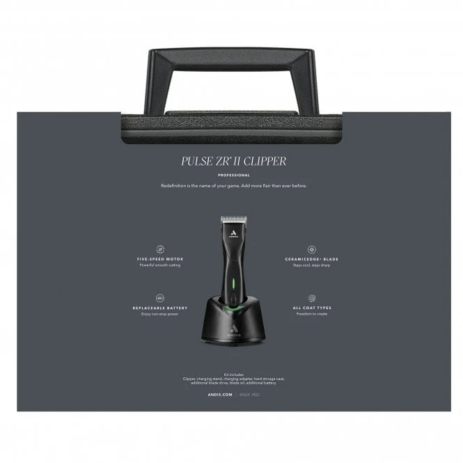 The Andis Pulse ZR II Detachable Blade Clipper is a powerful, heavy-duty clipper with removable battery pack and long running time for even more cordless clipping. With 5 speed settings, this versatile clipper is just the thing for groomers working on a range of coat types, helping to cut through dense hair as well as fine hair.