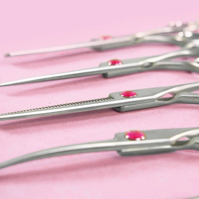 The Ophelia range is a beautifully made collection of pink gemmed scissors, crafted from high quality, sturdy stainless steel that offers precision and excellent performance. Ideal for professional groomers wanting to add some class and dynamism to their scissor collection, these scissors are designed to last and work beautifully through heavy-duty cutting and professional everyday use.