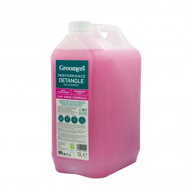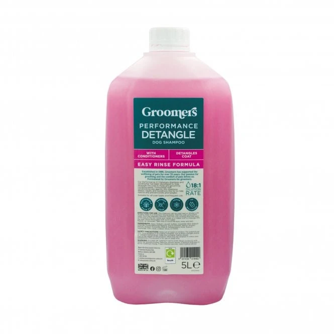 Groomers Performance Detangle Shampoo and Conditioner has been developed to help detangle the coat to make pre-grooming combing easier. Formulated with conditioning slip agents, this shampoo deeply cleans and conditions the coat to help reduce and prevent knots and tangles. It has a luxurious Wild English Rose scent.