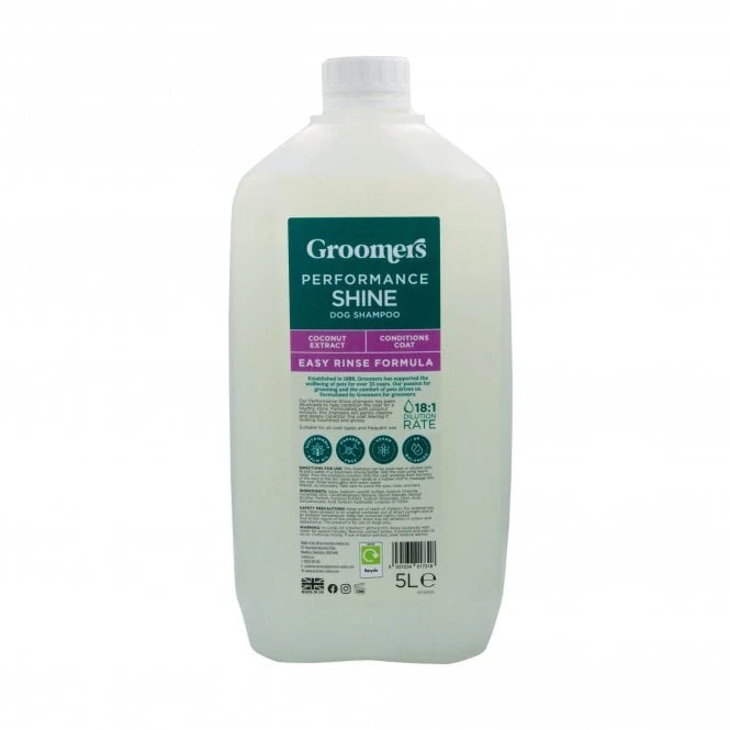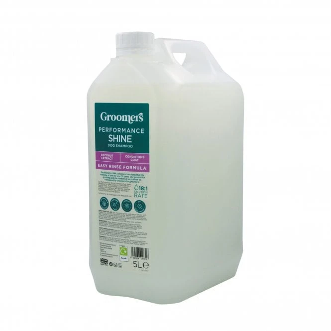 Groomers Performance Shine shampoo has been developed to help condition the coat for a healthy shine. Formulated with coconut extracts, this pH balanced shampoo will gently cleanse and deeply condition the coat leaving it looking nourished and glossy.